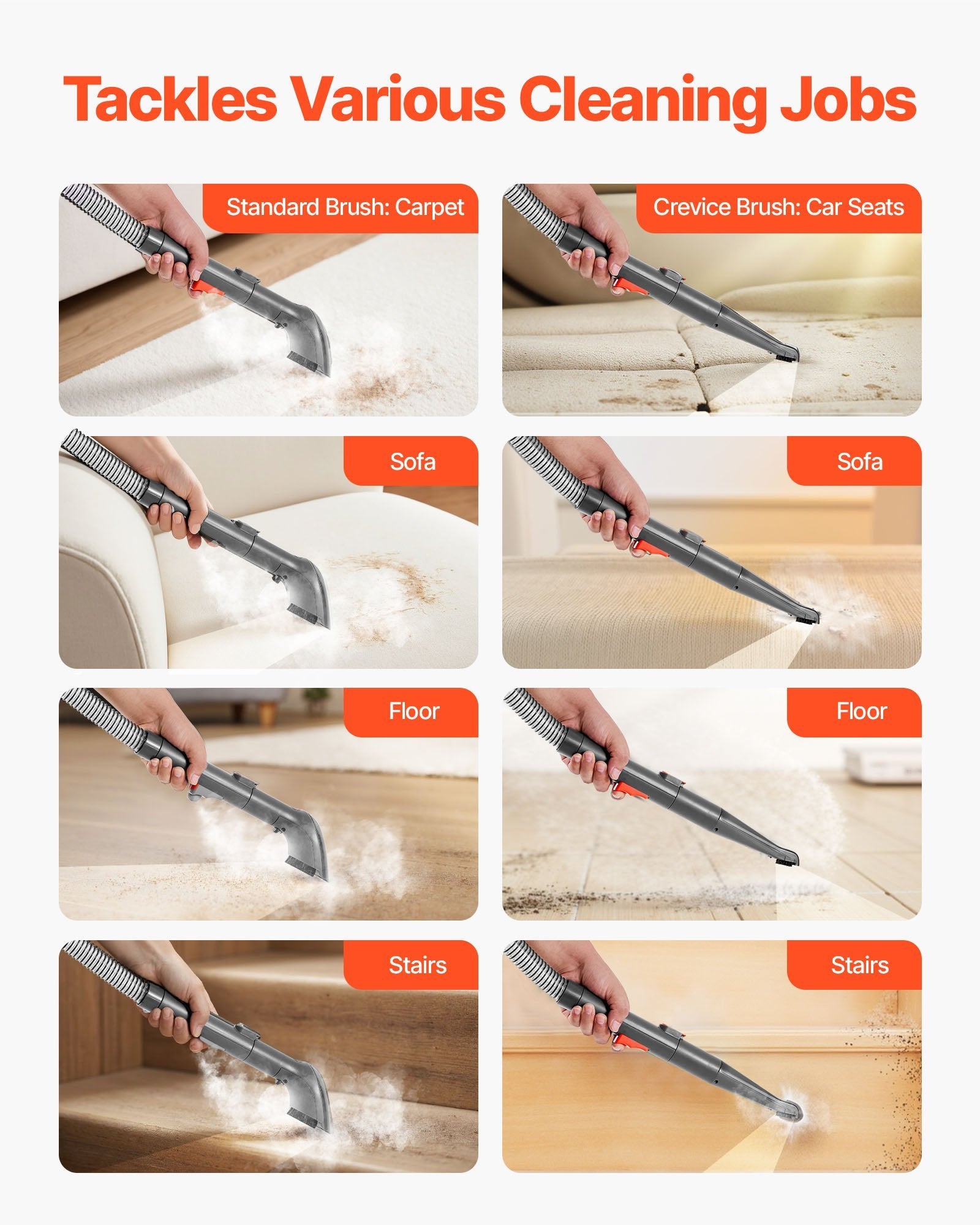 Removes deep dirt, dust, and stains from carpets, sofas, and car seats with strong suction. Perfect for pet stains, food spills, and everyday mess. -